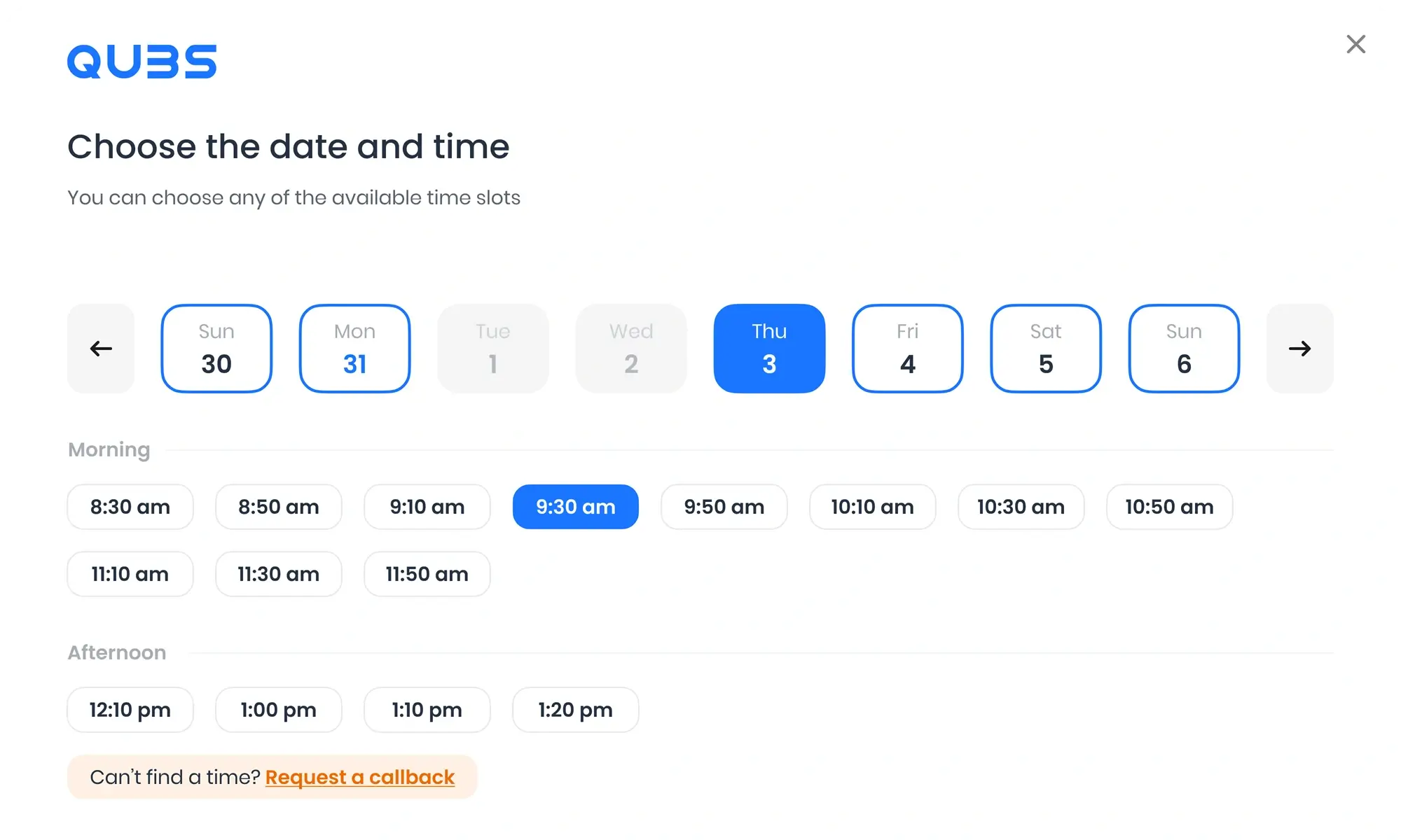 QUBS’s Online Bookings, Enhancing Patient Care with Convenient Scheduling.